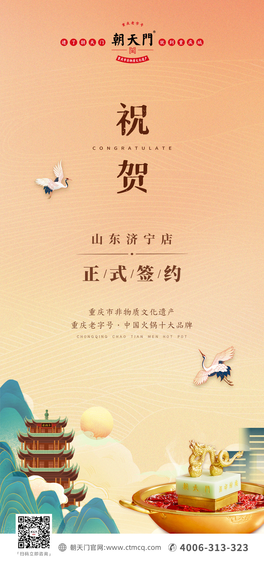 熱烈祝賀山東濟寧宮總與朝天門火鍋達成合作協(xié)議!