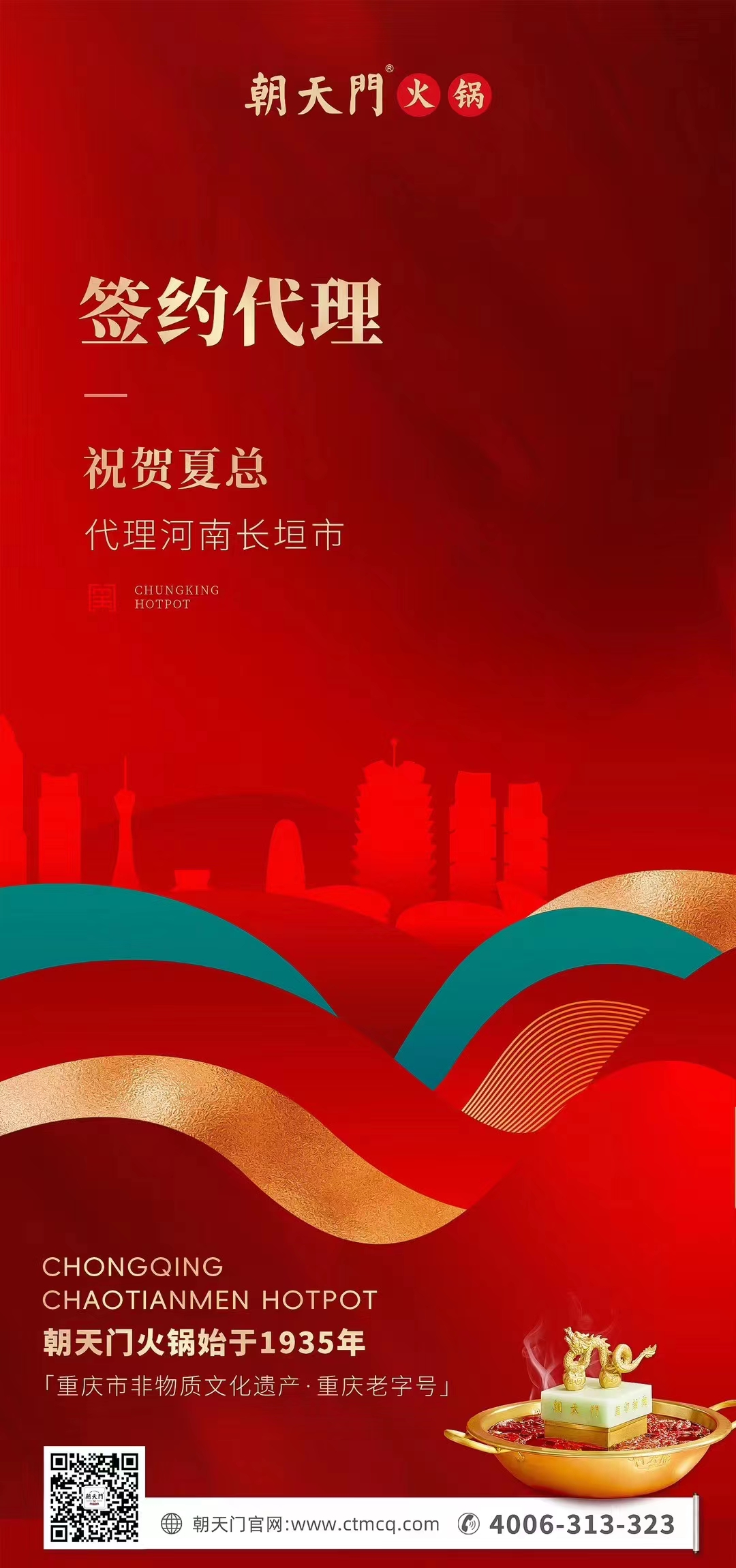 河南長垣市夏總,慧眼如炬,擁有強(qiáng)大洞悉力,充分挖掘到朝天門火鍋的特色,毫不猶豫地拿下了朝天門火鍋河南長垣市的代理權(quán),夏總之所以如此堅定,當(dāng)然也離不開朝天門品牌的市場名氣和雄厚實(shí)力,朝天門火鍋全員也將全程扶持,讓朝天門火鍋更好地融入河南長垣市的市場。